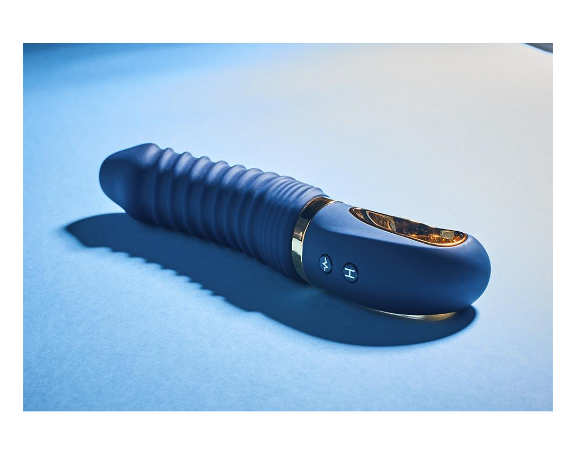 O Θερμαινόμενος δονητής είναι κατασκευασμένος από μπλε σιλικόνη με λεπτομέρειες σε χρυσό χρώμα.Διαθέτει λαβή σε σχήμα δακτυλίου με μεταλλική επίστρωση που το κάνει εύκολο να πιάνεται και να δείχνει πολυτελές.