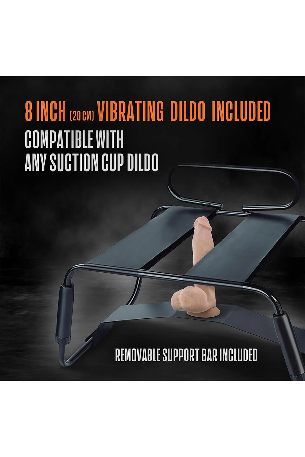 The Surrender Sex Chair is compatible will all suction cup dildos and vibrators and it includes 1 realistic 8" vibrating dildo to get you started. Add your partner underneath for mind-blowing penetration and oral sex. The sturdy iron construction caters a safe and secure experience to ensure durability and longevity, allowing you to fully immerse yourself in the moment without any worries.