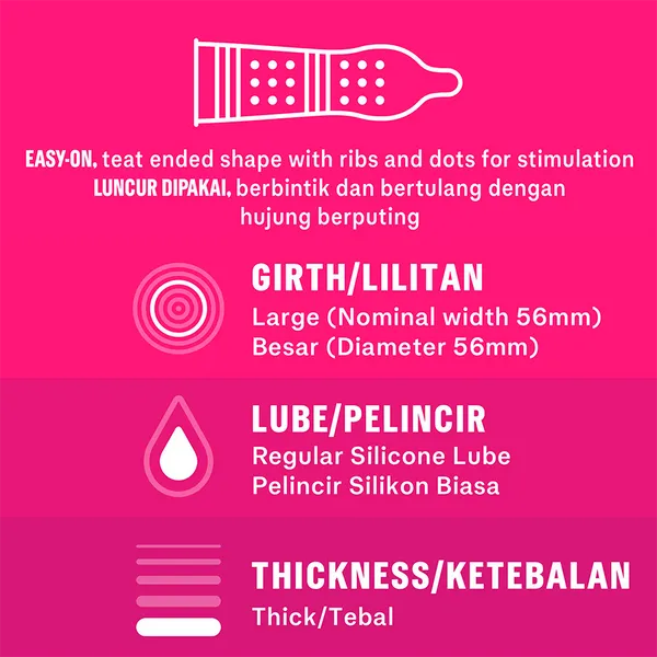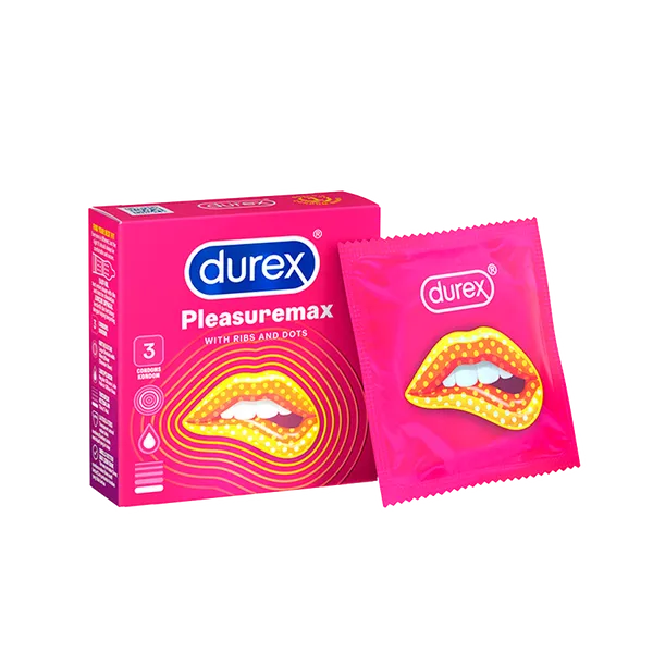 •Durex Pleasuremax Ribbed and Dotted condoms have ribs and dots near the base of the condom providing natural stimulation for a pleasurable experience.