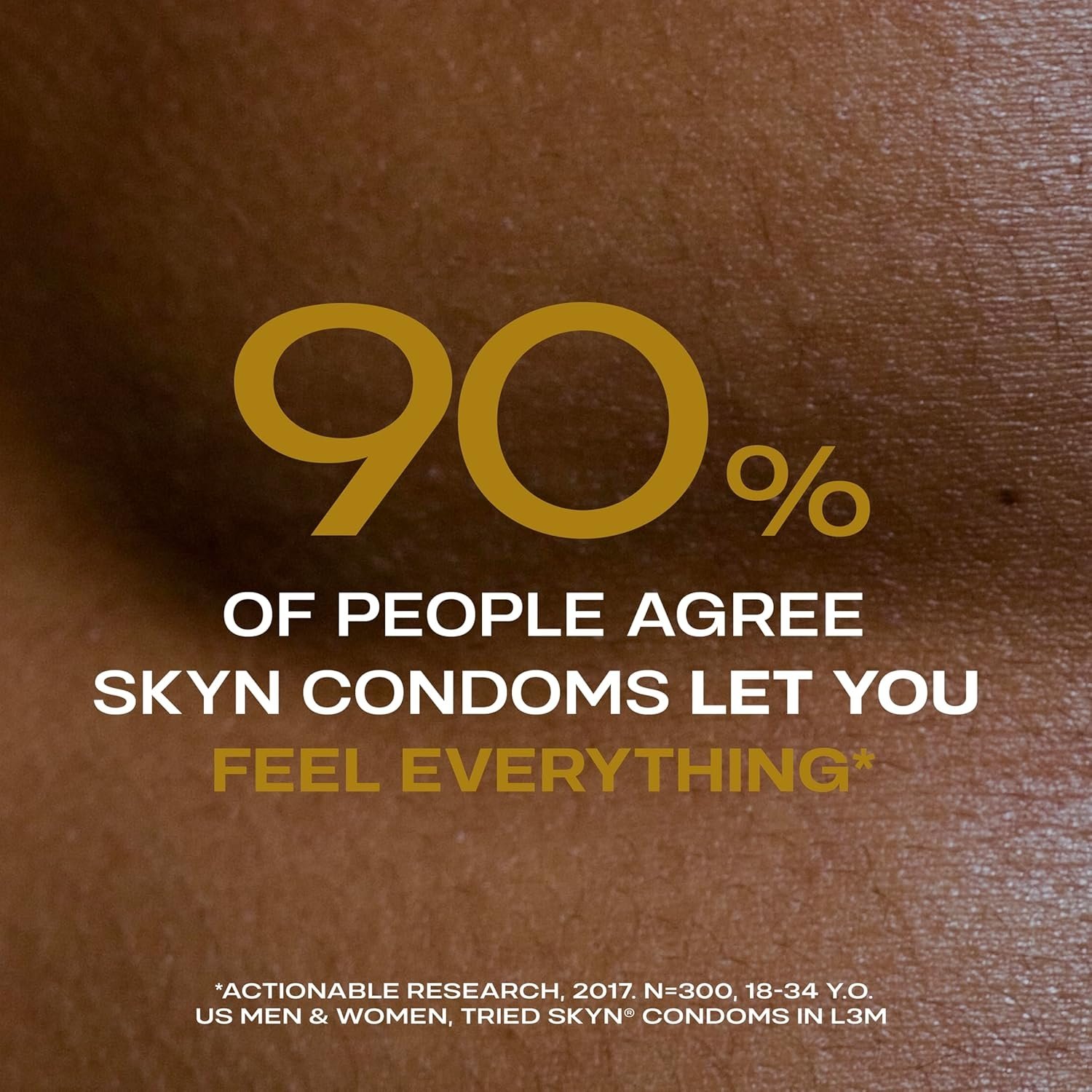 This new generation condom is made from SKYNFEEL, a technologically advanced latex-free material proven to enhance arousal. It feels so soft and comfortable you'll barely notice you're wearing it, allowing you and your partner to really feel everything. SKYN condoms are made from synthetic polyisoprene, do not contain natural rubber latex and are a suitable choice for people with suspected latex allergy. SKYN Premium Polyisoprene Lubricated Male Condoms stretch easily and conform to your shape for comfortable wear. They are also free of allergens, making them a safe choice. These latex-free lubricated condoms are soft and natural and offer a great experience. To protect condoms from being damaged, it is best not to store them in your purse. Unused condoms should be stored in their packaging in a cool and dry environment.