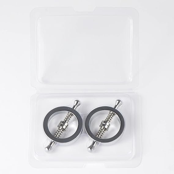 •Nipple clamps, adjustable, via screws to fit the size you want.