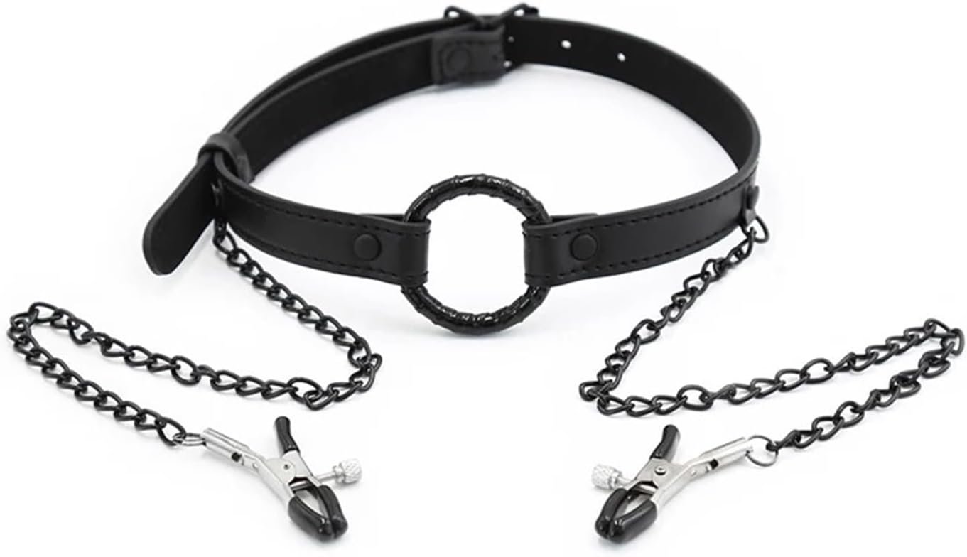 SMD Good Hoe, Mouth Gag with Nipple Clamps, BDSM Set Leather Gag and Nipple Clamps