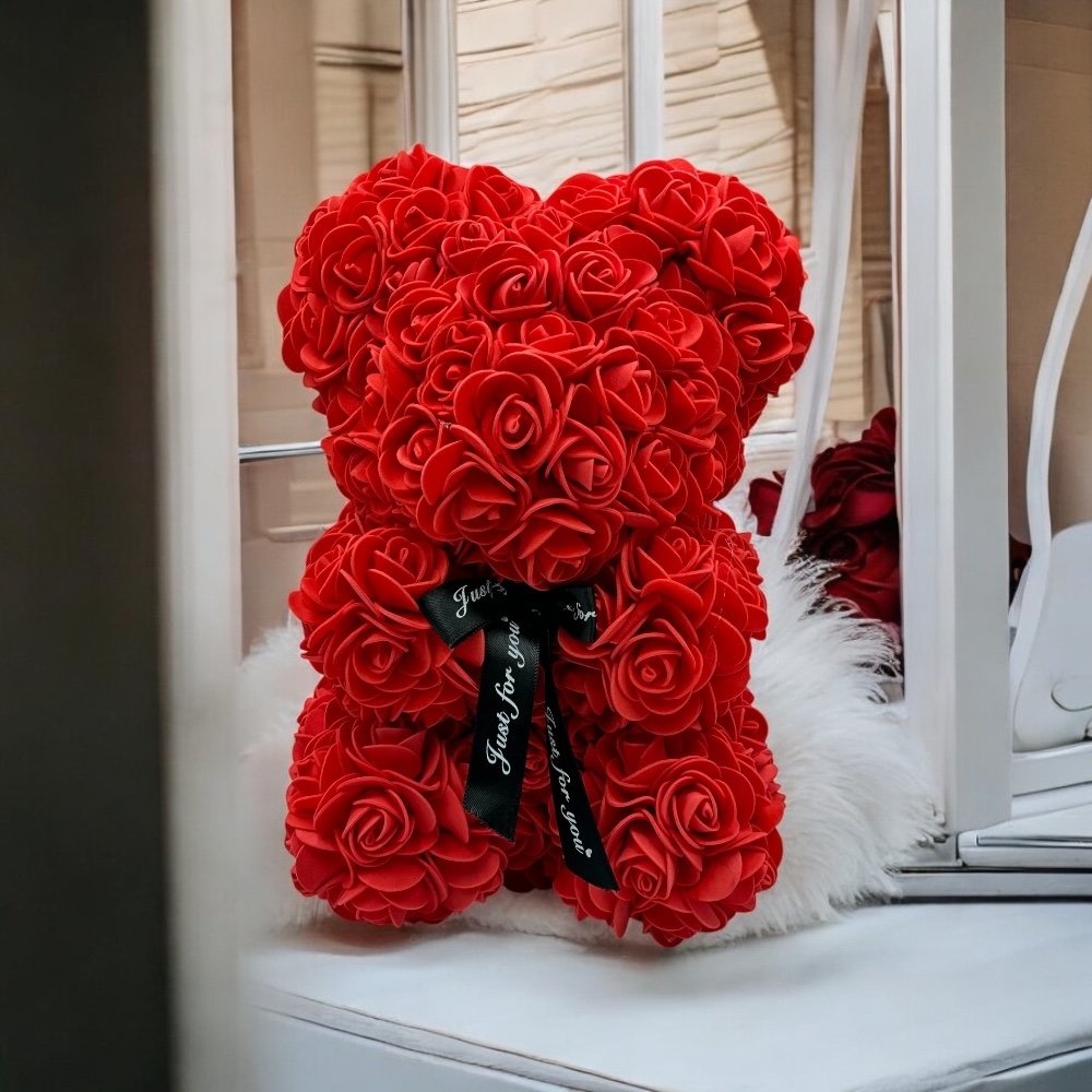 🌹 Το Forever Rose Teddy Love Gift είναι ένα εντυπωσιακό χειροποίητο διακοσμητικό αρκουδάκι, καλυμμένο με τριαντάφυλλα τύπου forever roses που διατηρούνται αναλλοίωτα για πολύ μεγάλο χρονικό διάστημα. Ένα σύμβολο αγάπης που παραμένει όμορφο και διαχρονικό χωρίς καμία ανάγκη φροντίδας.