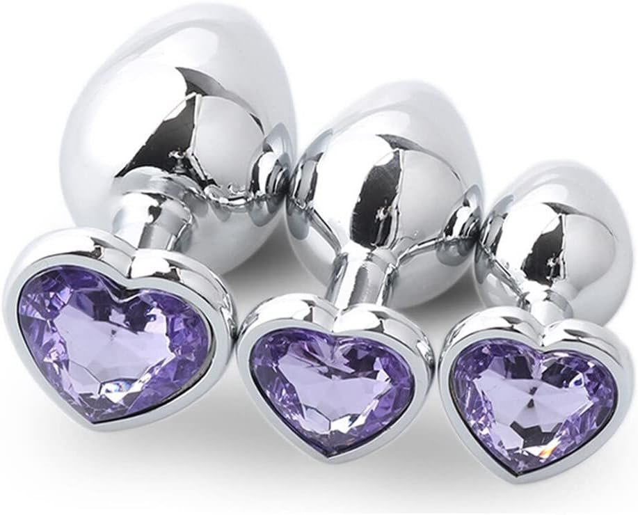 💦SMD Analyzer Triple, Butt Plug Set, Πρωκτική Σφήνα Σετ των 3 (S / M / L ), Silver / Lilac Heart💦