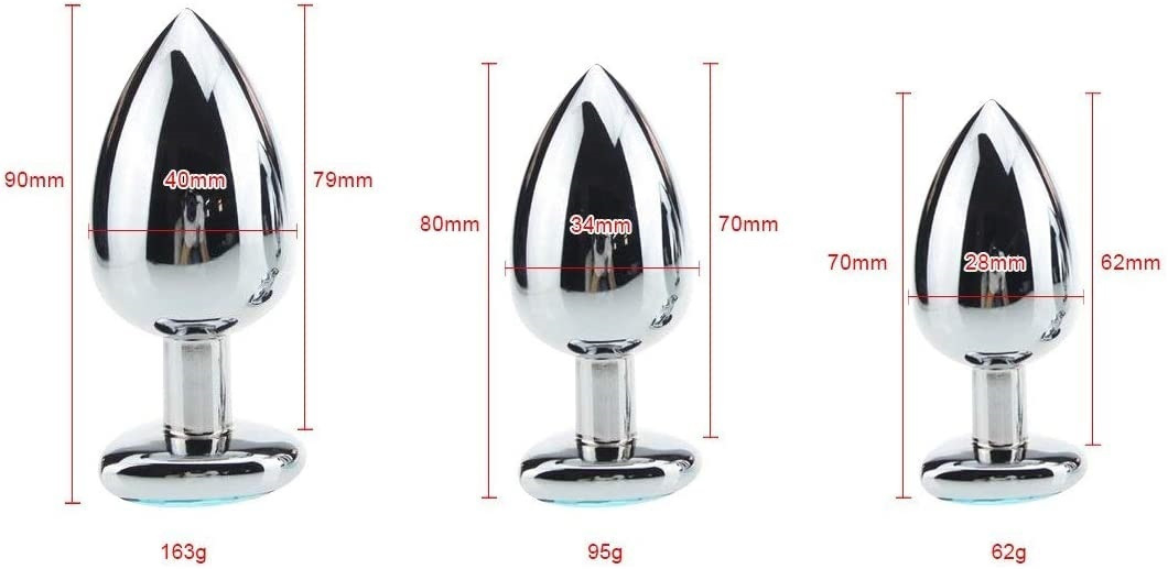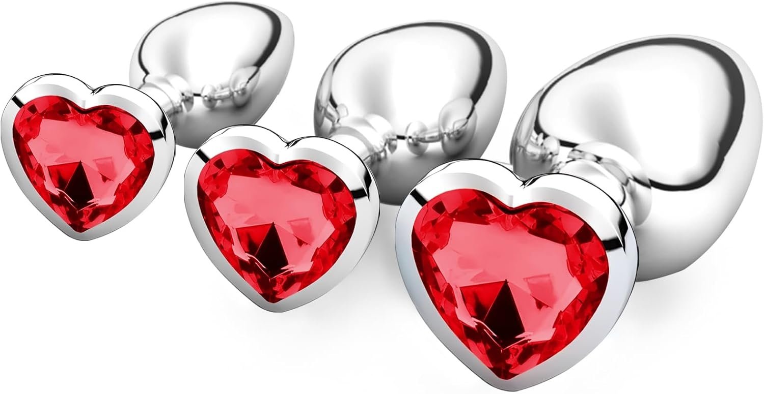 💦SMD Analyzer Triple, Butt Plug Set, Πρωκτική Σφήνα Σετ των 3 (S / M / L ), Silver / Red Heart💦