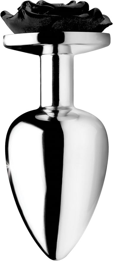 SMD Rose Butt Plug, Πρωκτική Σφήνα S 8cm, Silver / Black Rose