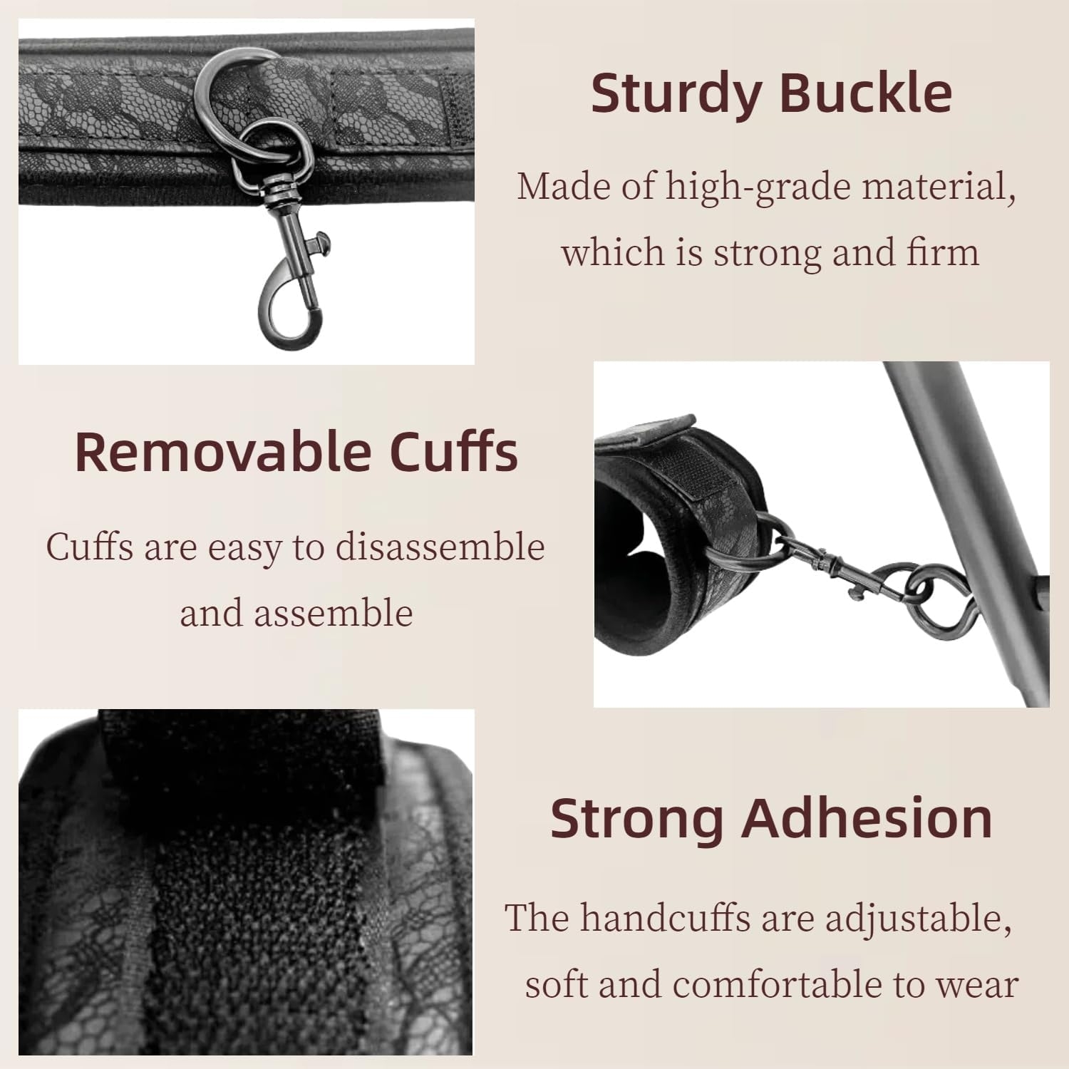 💓Ρυθμιζόμενες Μανσέτες και Κολάρο: Αυτές οι μανσέτες και το κολάρο είναι κατασκευασμένα από νάιλον υλικό, το οποίο είναι μαλακό και άνετο στη χρήση, προσφέροντάς σας μια εξαιρετική εμπειρία παιχνιδιού bondage.