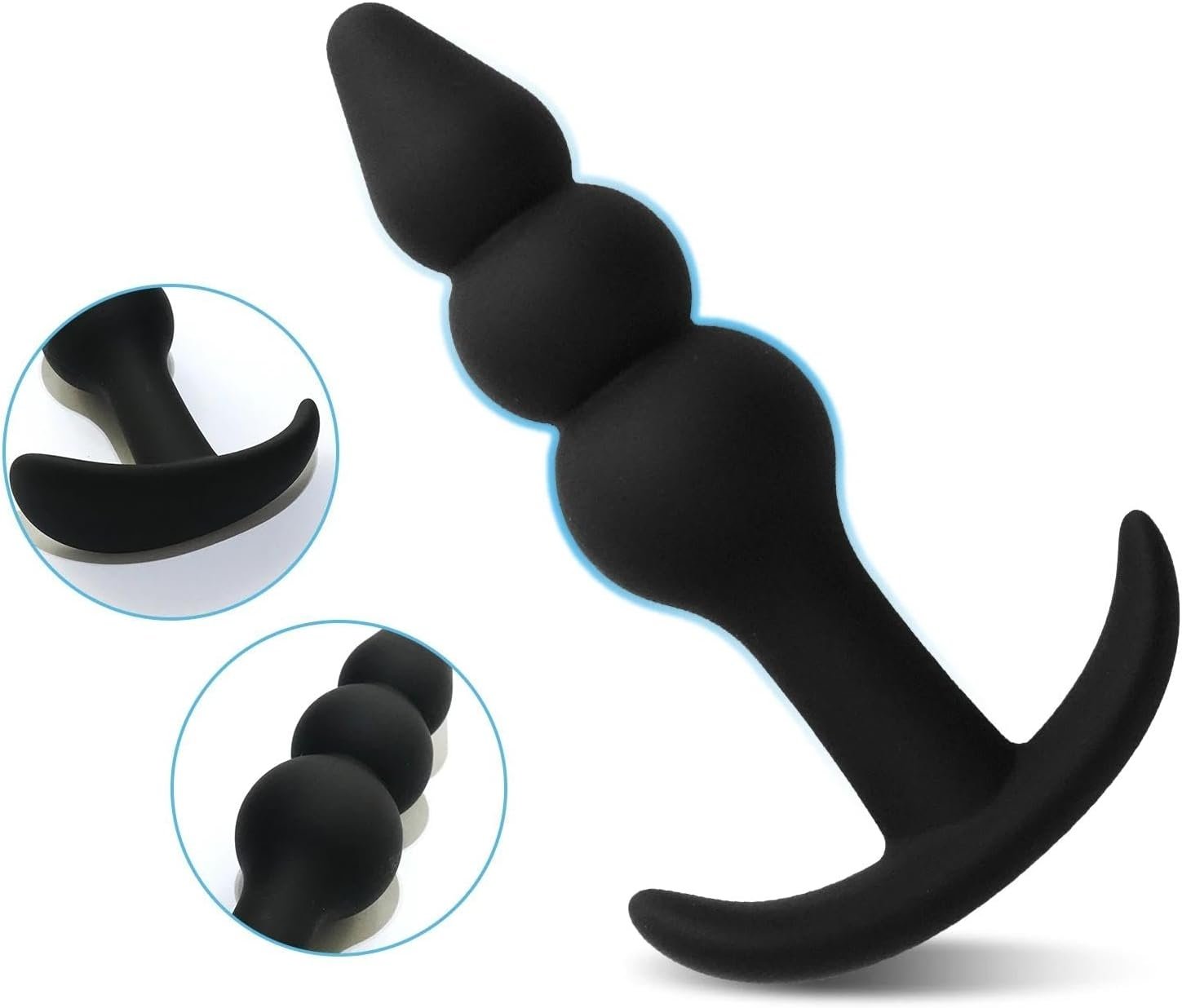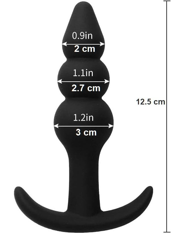 SMD The Prober, Three Beads Silicone Anal Plug With Contoured Anchor Base, Skin Safe, 12.4cm, Black