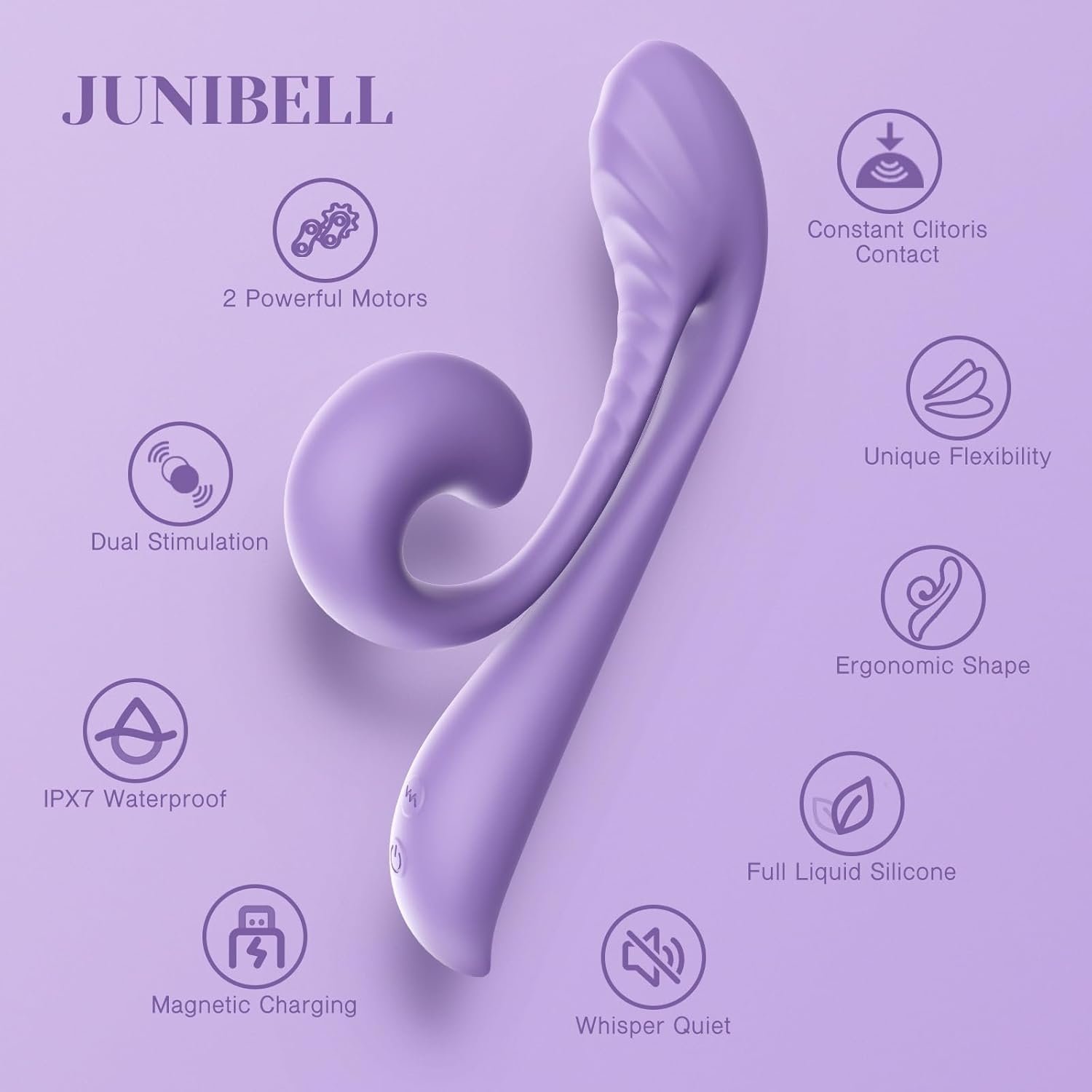 Tracy's Dog Junibell Clitoral Rabbit Vibrator, Dual Stimualtion, Liquid Silicone, 10 Vibration Modes, Whisper-Quiet, Lavender