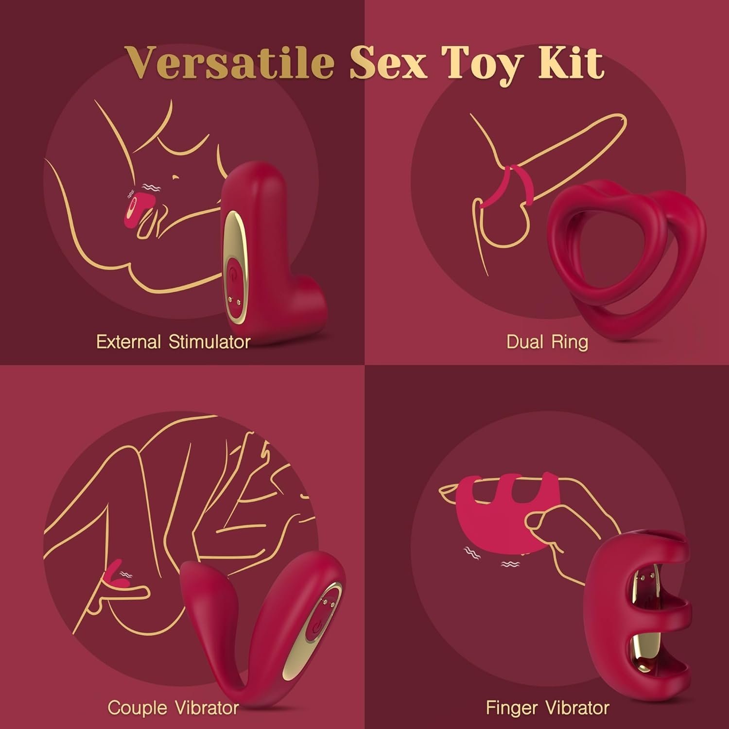 Tracy's Dog LOVE Remote Couple Interactive Kit, Dual Cock Ring, Couple & Finger Vibrator with Vibrating Bullet, Red